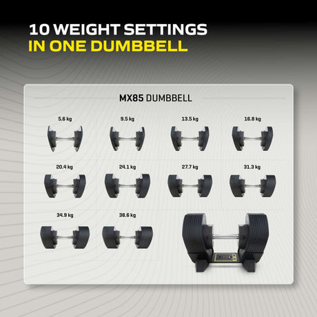 Justerbar hantel TUNTURI MX Select MX85 Hantel 5,6-38,6 kg, räfflad