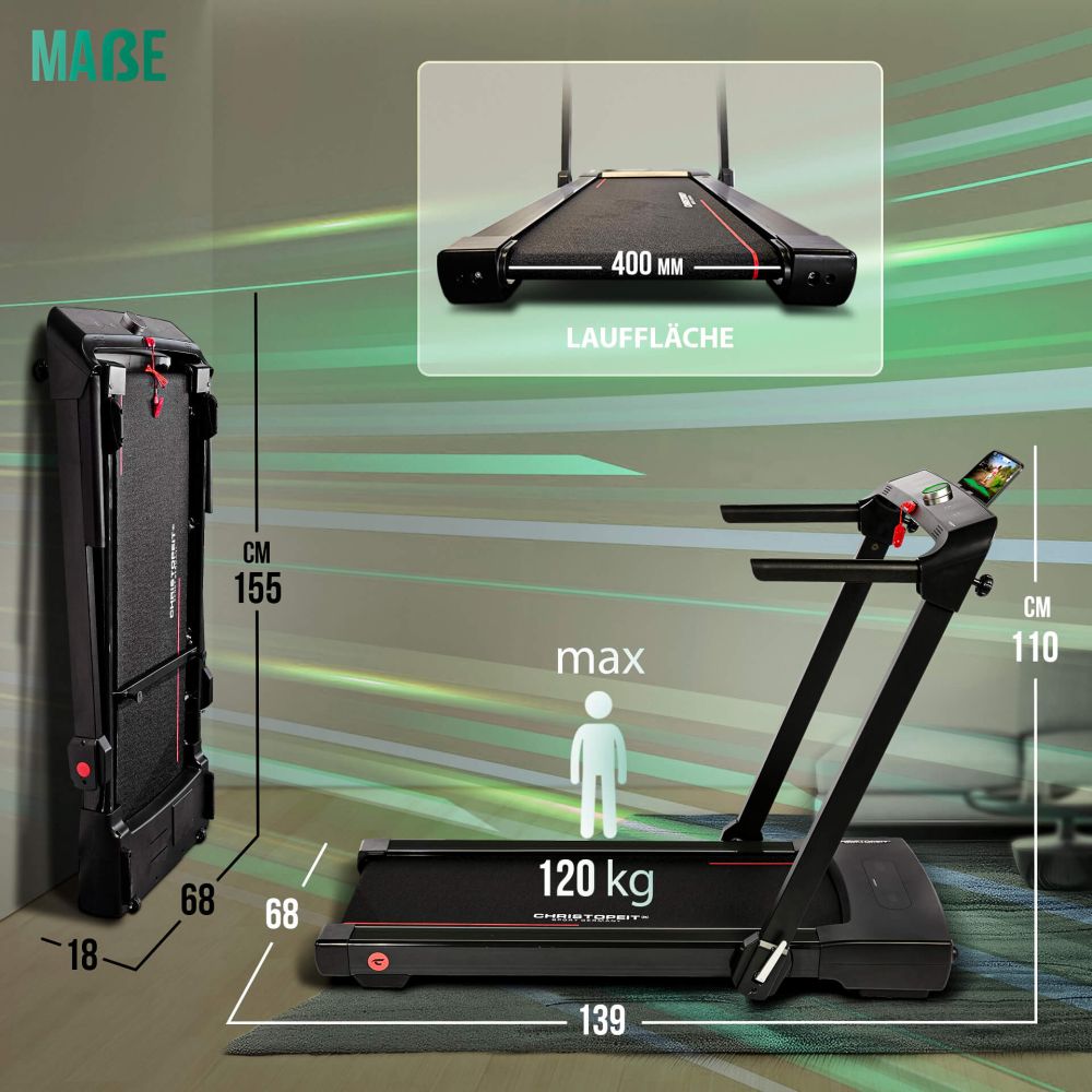 - Löpbandets storlek: 110 x 40 cm
