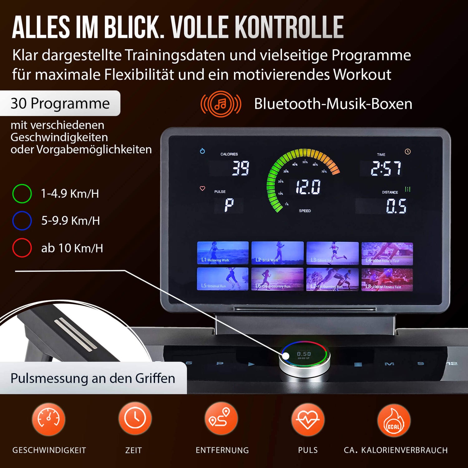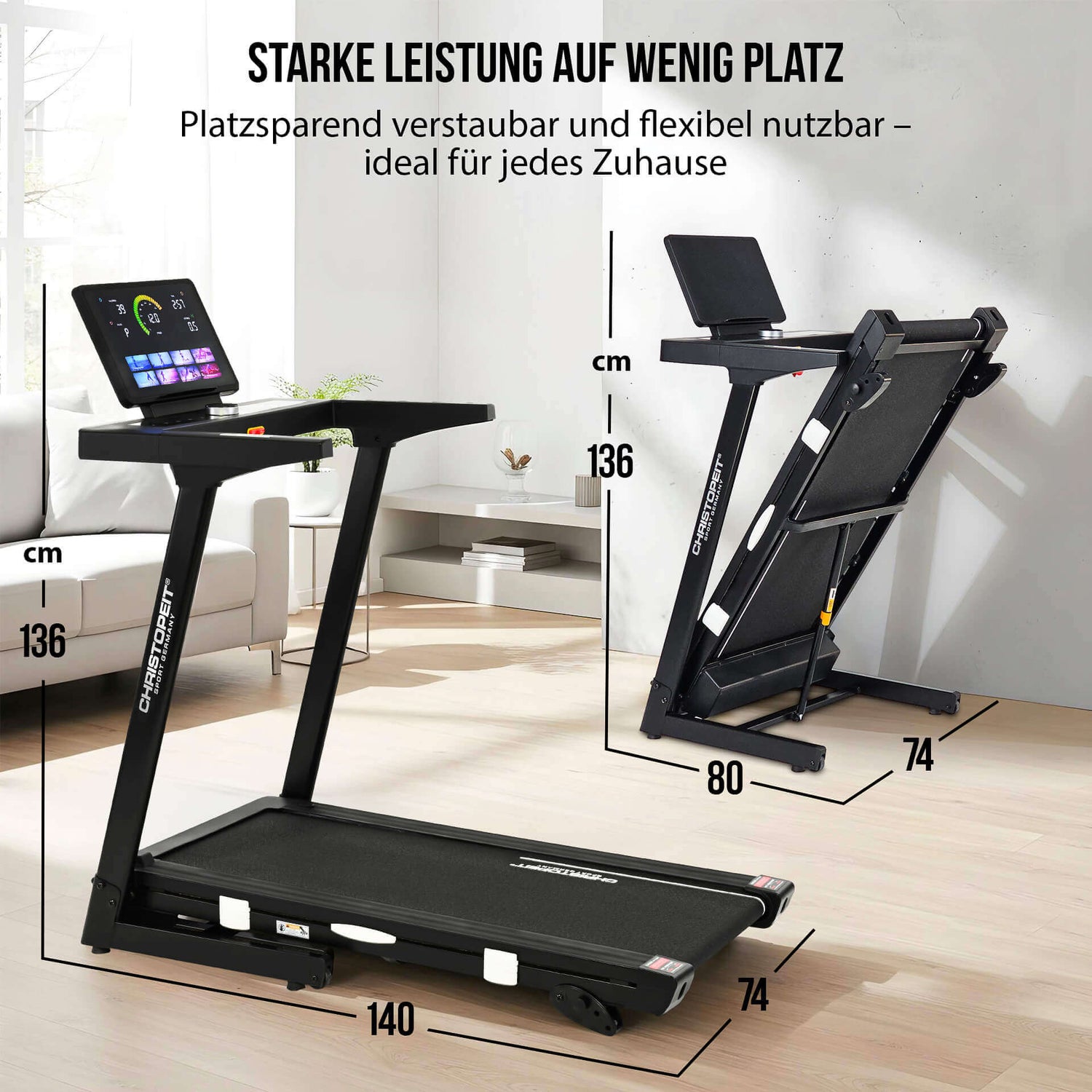 Christopeit TM 4000 S löpband är en innovativ maskin med smarta funktioner, alltid redo att ta din hemmaträning till nästa nivå. Detta högkvalitativa löpband erbjuder den perfekta kombinationen av prestanda, teknologi och design. Väl utformade funktioner, toppmodern anslutning och ett ledvänligt dämpningssystem gör detta till den idealiska hemmaträningsmaskinen för aspirerande idrottare och hälsomedvetna nybörjare. Tack vare det integrerade oljesystemet behöver du inte olja löpbandet manuellt. Löpbandet är kompatibelt med träningsappar som Fitshow etc.