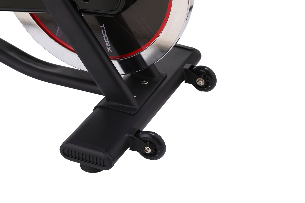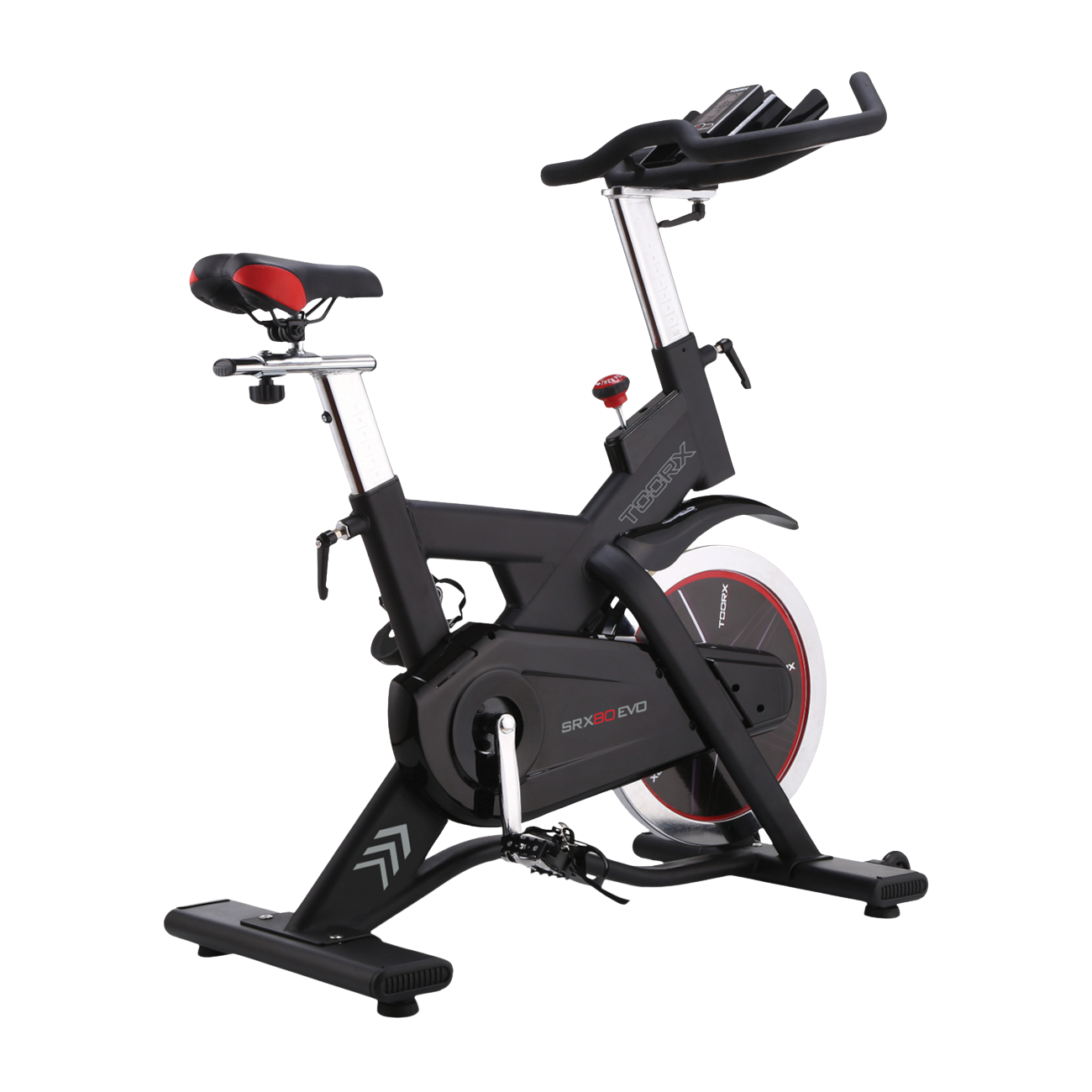 Toorx SRX-80 EVO är en hållbar och smidig spinningcykel för intensiva hemmapass. Den har ett 20 kg svänghjul, remdrift och ett precisionsfriktionsbromssystem för en realistisk cykelupplevelse. Den justerbara sadeln och styret gör att cykeln kan anpassas efter användarens behov.