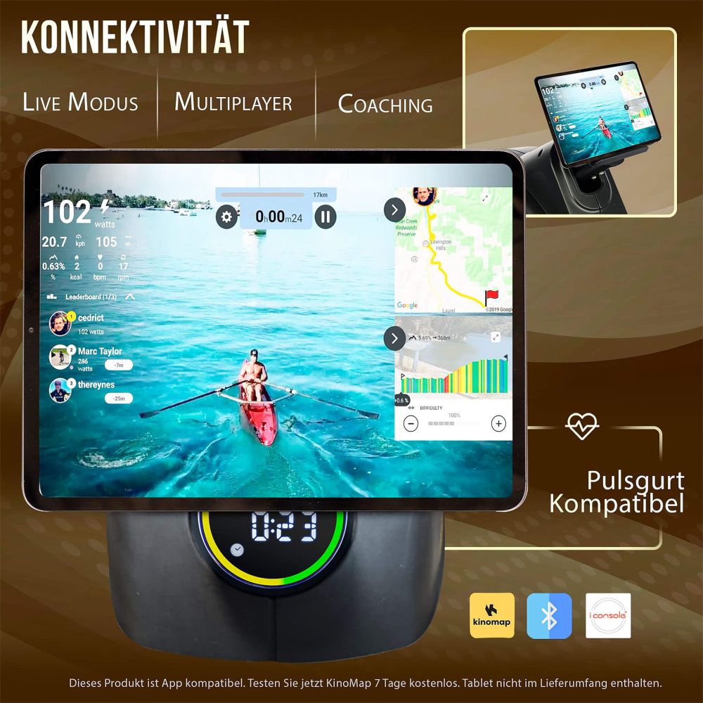 Motionscykel Christopeit Vico garanterar ett komplett träningspass oavsett väder. Träning med pedalergometern tränar nästan alla kroppens muskler, särskilt axlar och rygg, som ofta försummas. Även bålmusklerna. Det 32-stegs bromssystemet gör det möjligt för personer med olika träningsnivåer att träna. Den användarvänliga LED-displayen visar de 7 viktigaste parametrarna på ett ögonblick. Enheten är Bluetooth-anslutningsbar.