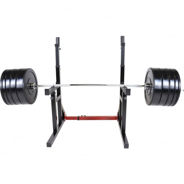 Skivstångsställningen har en maximal höjd på 163cm och tål en maximal belastning på 300kg. Värt att tänka på är bredden och att det kan bli tajt att köra bänkpress liggandes emellan safety racken om du är van att hålla brett. Mer information om skivstångsställningen hittar du här.