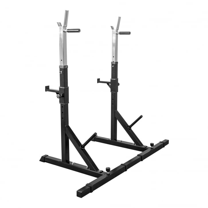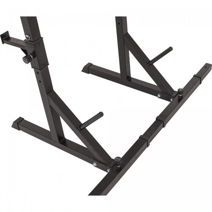 Skivstångsställningen är en fristående ställning som tål en maximal belastning på 200/250kg, är 133cm hög och är perfekt för att träna bänkpress och dips.