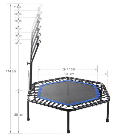 En träningsstudsmatta är en trampolin speciellt utformad för fysisk aktivitet. Till skillnad från vanliga nöjesstudsmattor är träningsmodeller robusta, har stabil fjädring och erbjuder ett jämnt hoppmotstånd som gör träningen både säker och effektiv. Studsmatta träning aktiverar hela kroppen, stärker benen, rumpan och coremuskulaturen samtidigt som hjärta och lungor får en utmanande konditionsträning.
