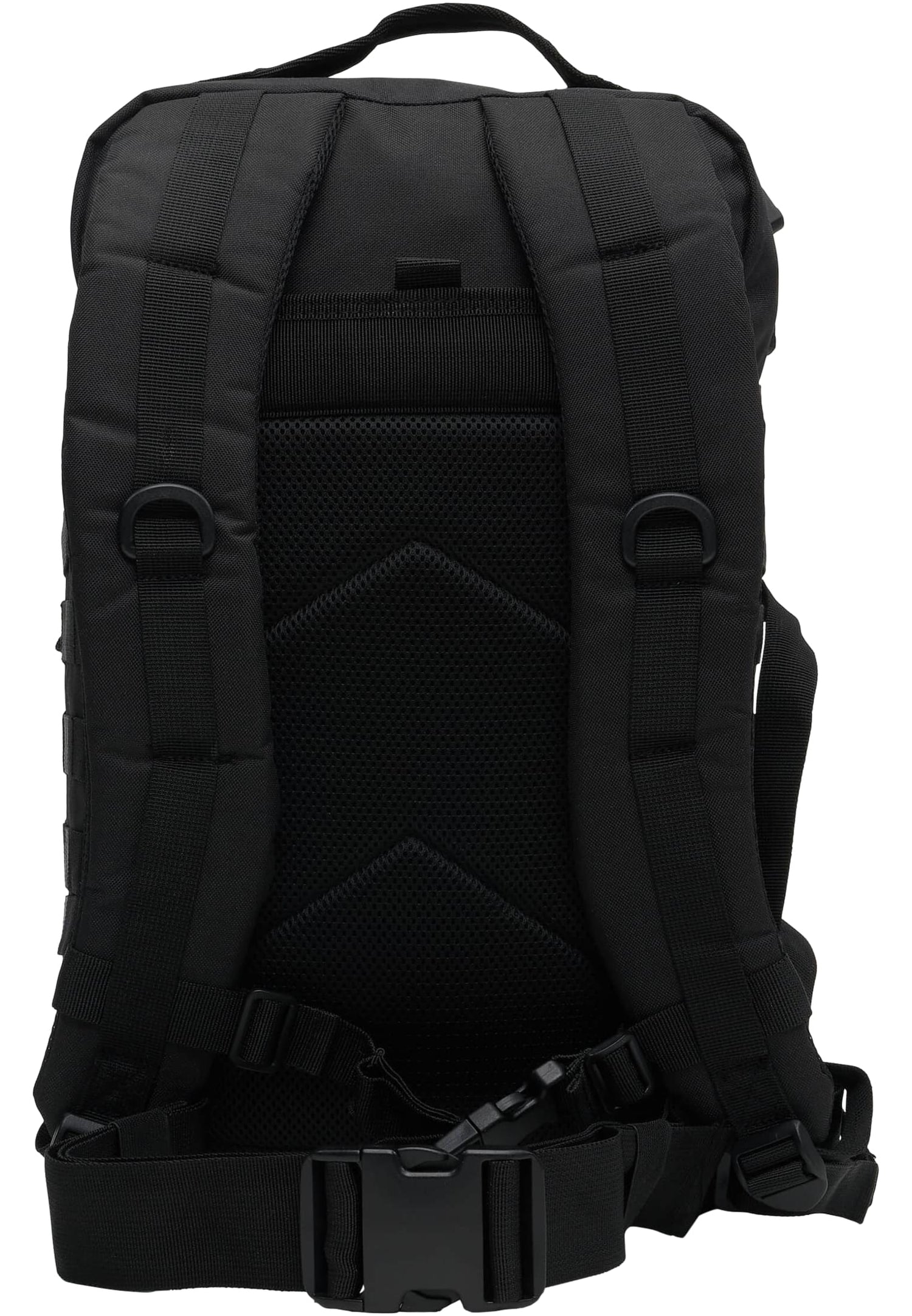 Ryggsäcken är inte bara snygg utan också praktisk. Den har ett MOLLE-system som gör att du kan fästa extra utrustning, en framficka med organisatör, ett justerbart höftbälte för bättre komfort och kompressionsremmar på sidorna så att du kan justera ryggsäckens volym efter behov.