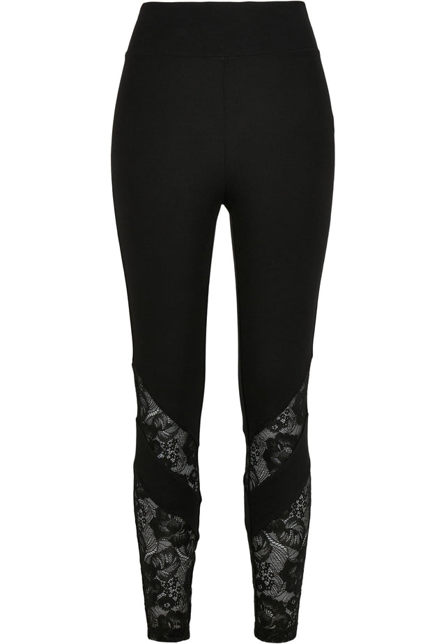 Dessa sexiga leggings ser fantastiska ut och sitter ännu bättre – transparenta, diagonala spetsinfällningar på underbenen ger en extra detalj. De funktionella leggingsen sitter högt i midjan och har ett elastiskt band för bästa passform. Självklart har de en slim fit-passform, vilket passar perfekt med det flexibla stretchjerseymaterialet.