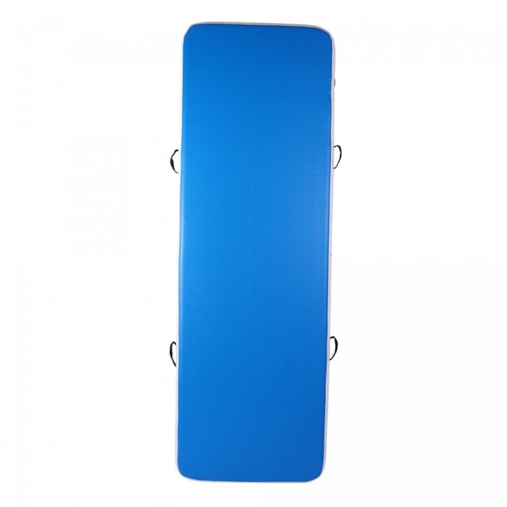 För att enkelt kunna flytta mattan när den är uppblåst är den utrustad med totalt fyra handtag och med den medföljande elektriska pumpen är den även lätt att transportera och blåas upp på platsen för träningspasset.