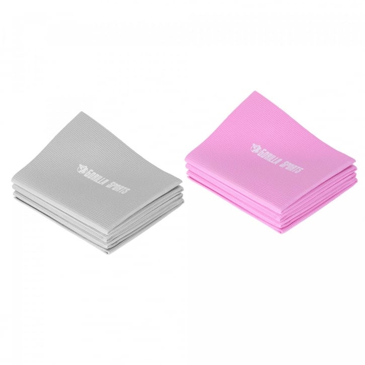 Vikbar yogamatta i två olika färger som är 0,4cm tunn, 173cm lång och 61cm bred och gjord av hudvänlig PVC.