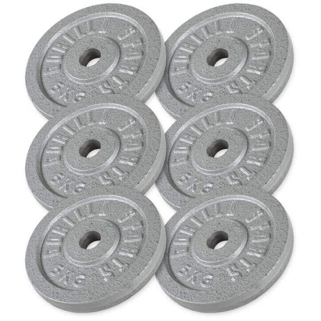 Ett viktpaket på 30kg med sex viktskivor på 5kg styck, alla högkvalitativa och tillverkade i gjutjärn.