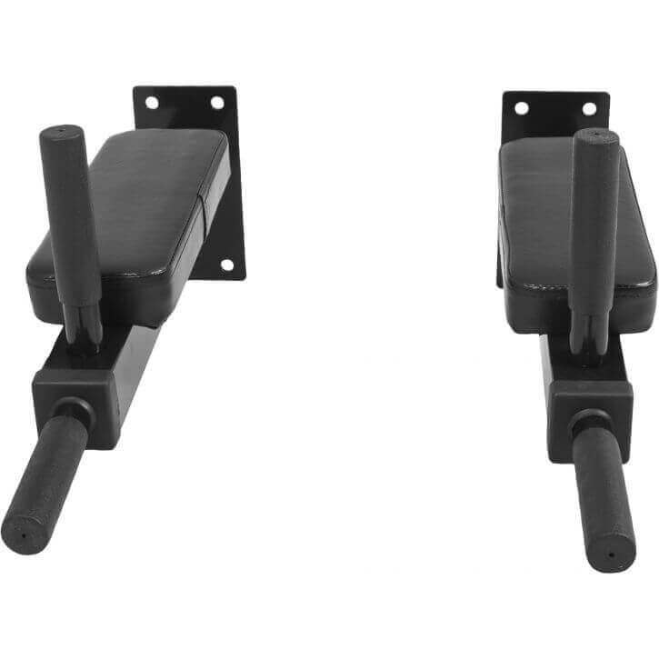 Dips är en tuff men effektiv övning som tränar i princip hela framsidan av överkroppen och det du inte får träff på får du träff på när du gör benlyften. Armstöden och handtagen ämnade för att göra just benlyft utgör det perfekta stödet tillsammans med väggen som du väljer att montera handtagen på.