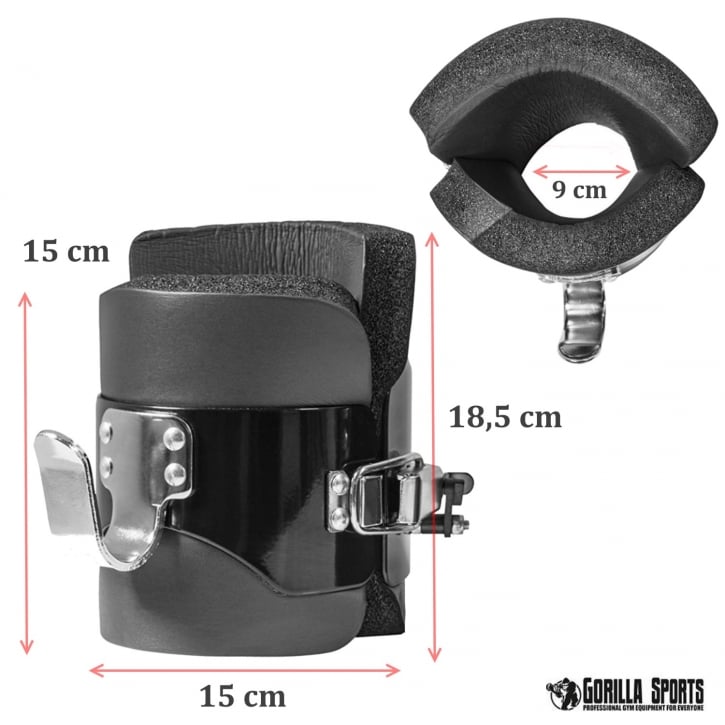 Gravity Bootsen har massiva stålkrokar som du enkelt hakar på tex chinsstänger med en diameter på upp till 3cm.