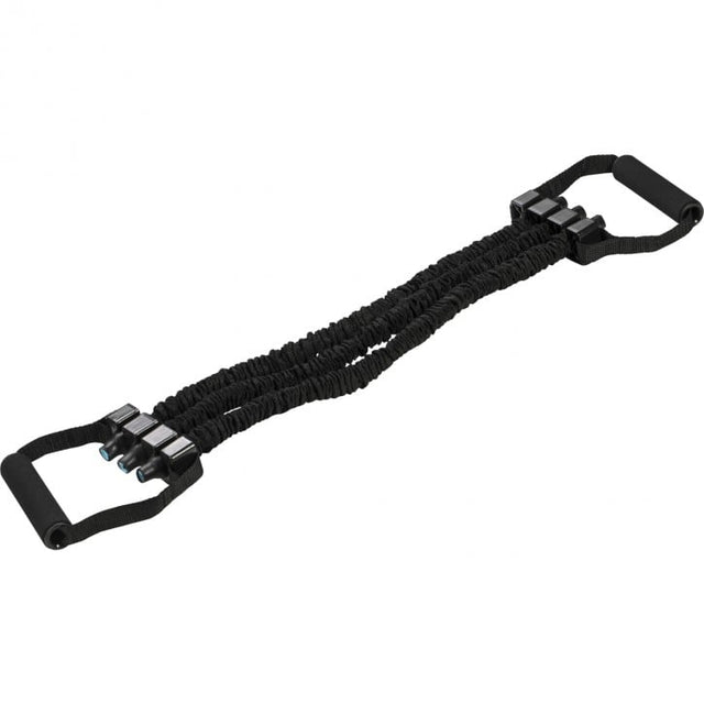 Det justerbara tre i ett-gummibandet med handtag från Gorilla Sports är lätt att ha med sig överallt och ett mycket bra redskap för att ge din kropp den träning den behöver.