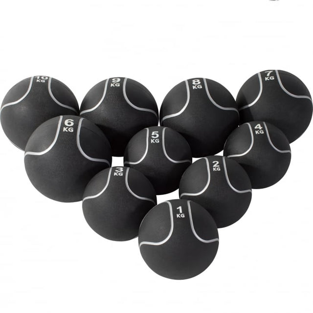 Medicinbollar i svart och silver finns i vikterna mellan 1-10kg och har två olika diameter där en är för vikterna 1-5kg och en är för vikterna 6-10kg.
