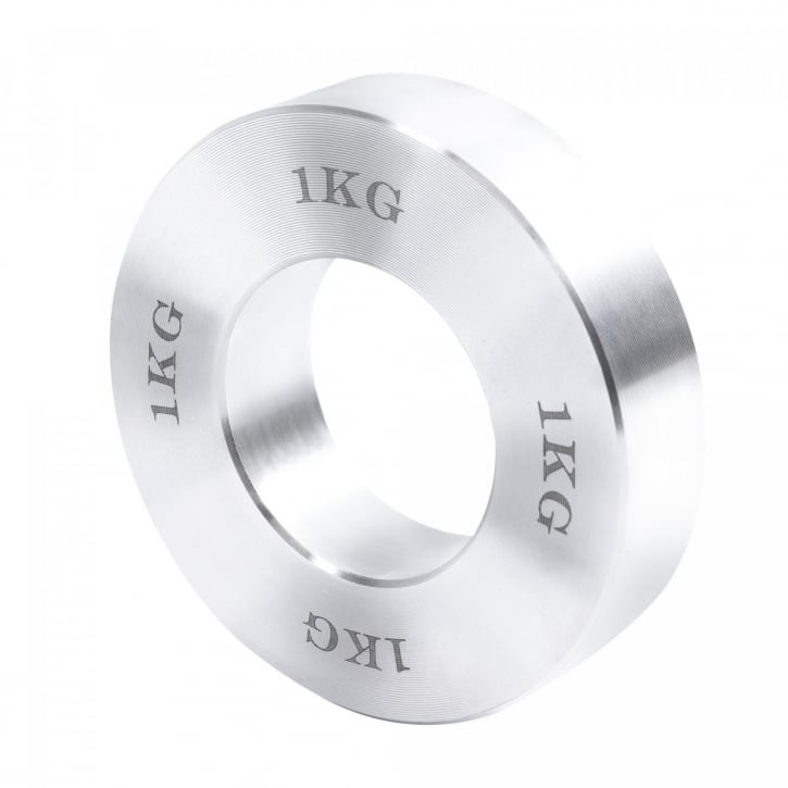 Den kromade uppsättningen viktskivor med en total vikt på 5kg beståendes av åtta viktskivor i vikter mellan 0,25-1kg. Viktskivorna har en håldiameter på 51mm och passar därför skivstänger med en diameter på 50mm.