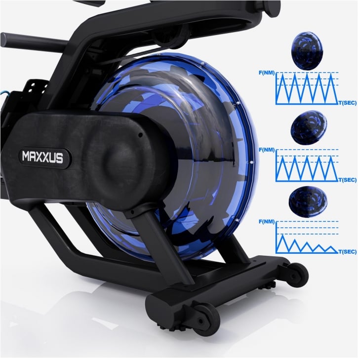 Roddmaskinen från MAXXUS ger en smidig och mjuk roddupplevelse när du ror med den revolutionerande motståndstekniken, som till skillnad från klassiska roddmaskiner använder vattenmotstånd.