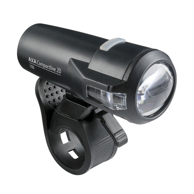 AXA Compactline Front 20 Lux är USB-uppladdningsbar, passar alla cyklar och är mycket enkel att fästa och ta bort med gummiband. Batteriet har en livslängd på 1000 laddningscykler, vilket gör det till ett utmärkt alternativ till batteridrivna lampor. Lamporna fungerar i alla väder, även i regn och snö, från -10°C i kyla till +40°C i värme.