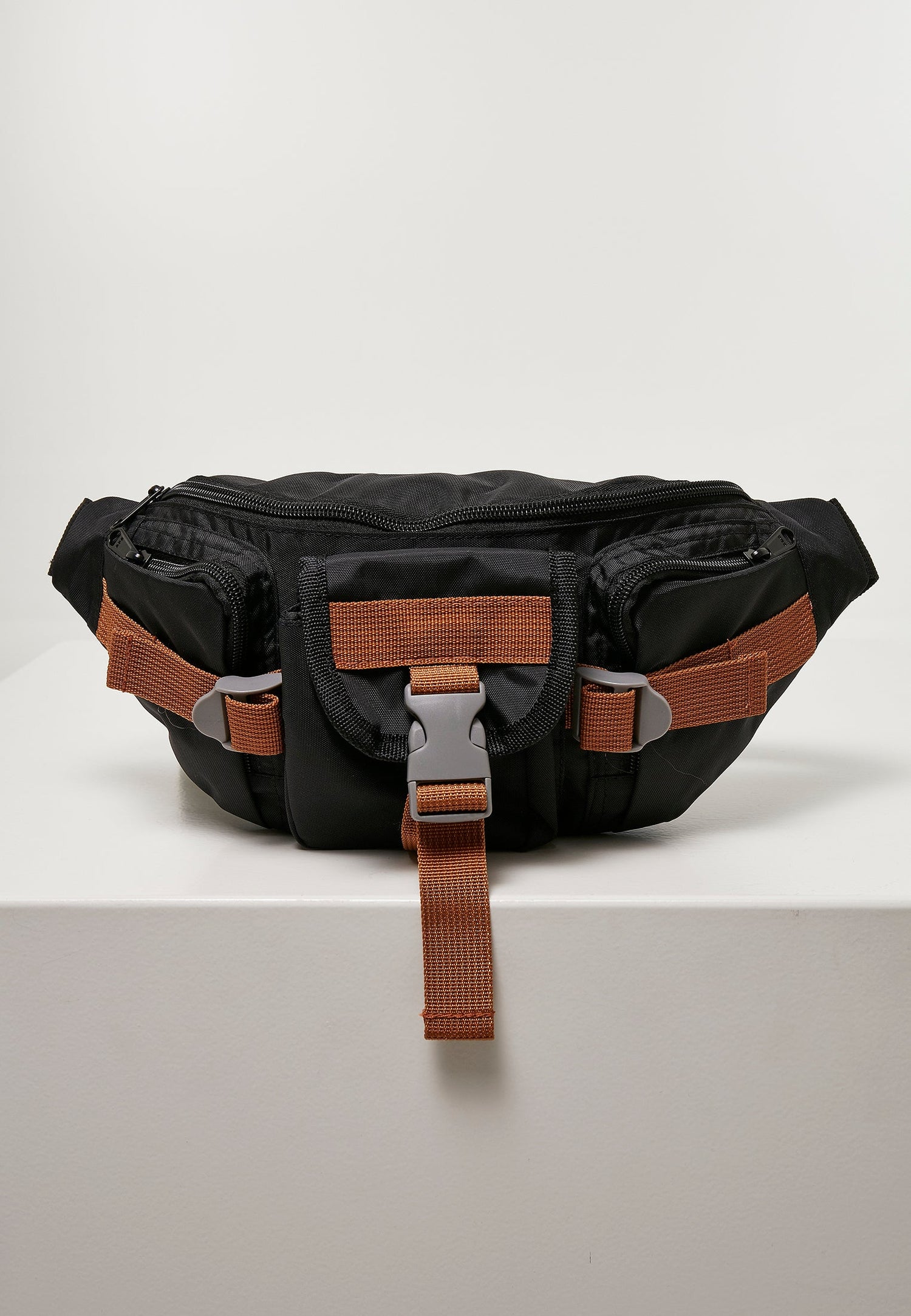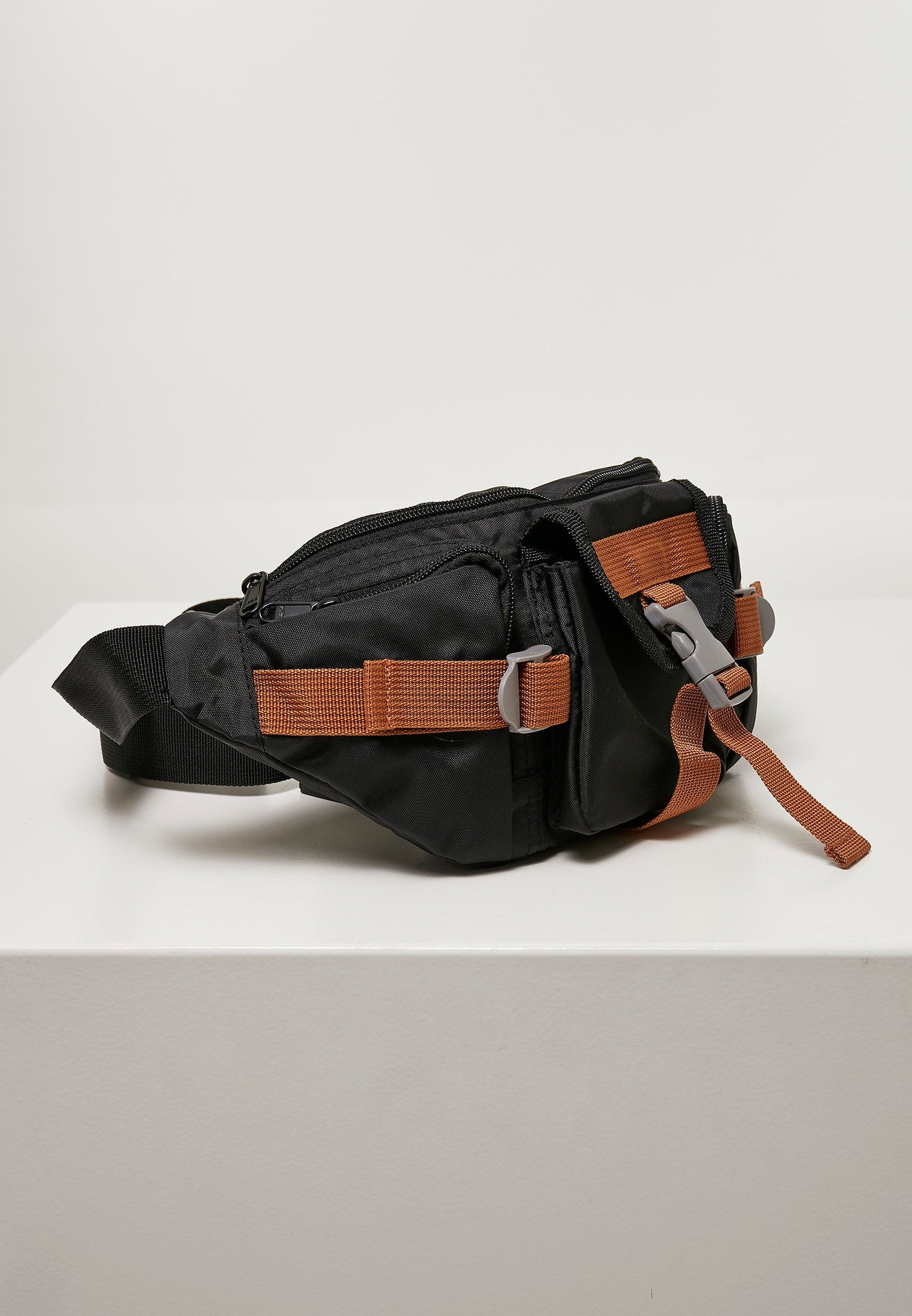 Denna ryggsäcksinspirerade axelväska från Urban Classics är perfekt för den som söker både funktionalitet och stil. Väskan har tre yttre fickor, applicerade tejpremmar och fastsättningsclips som ger en sportig look och maximal funktionalitet. Två av fickorna har dragkedjor, medan den mittersta har lock och clip-fastning. Huvudfacket är även det utrustat med dragkedja. Väskan är tillverkad i rivtålig, återvunnen polyester. Bältet är justerbart och har även det en clip-fastning.