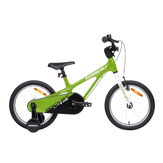Tabou Rocket Lite MG är en ultralätt cykel för pojkar. Ett utmärkt sätt att tillbringa tid utomhus och påbörja ett cykeläventyr. Designad för att erbjuda maximal säkerhet och komfort under cykling. Rocket Lite MG-ramen är tillverkad av magnesium och gaffel, fälgar och vevar är tillverkade av aluminium för hållbarhet. Klassiska V-bromsar används på styret för att säkerställa bromsning under alla förhållanden.